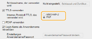 Aktivieren Sie das Kontrollkästchen [TTLS verwenden] oder [PEAP verwenden].