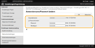 Klicken Sie auf [Anwendername/Passwort ändern].