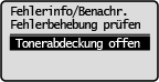 Zeigt die Menge des in der Tonerpatrone und Trommelpatrone verbliebenen Toners an. Andere interne Teile können das Ende ihrer Nutzungsdauer erreichen, bevor die Menge des in der Tonerpatrone oder Trommelpatrone verbliebenen Toners verbraucht ist.