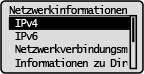 Diese Option zeigt die Netzwerkeinstellungen, wie die IP-Adresse des Geräts und den Status, wie den Zustand der Wireless LAN-Kommunikation, an.