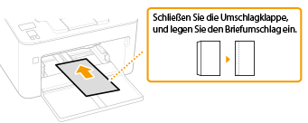 Achten Sie darauf, Briefumschläge vor dem Einlegen gegebenenfalls flachzudrücken. Beachten Sie außerdem die Ausrichtung der Briefumschläge und die nach oben weisende Seite.