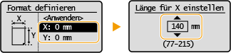 Eingabe der Länge der <X>-Achse der Seite mit / <Y> Eingabe der Länge der <Y>-Achse der Seite ![]() ![]() |