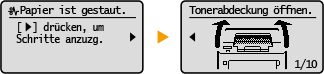 , um einfache Lösungen anzuzeigen. Wenn die Schritte im Display schwer zu verstehen sind, schlagen Sie unter den folgenden Abschnitten nach, um den Papierstau zu beheben.