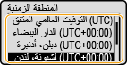 إذا تم تغيير إعداد المنطقة الزمنية، تتغير القيم المضبوطة في <ضبط التاريخ/الوقت الحالي> أيضا وفقا لذلك.