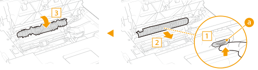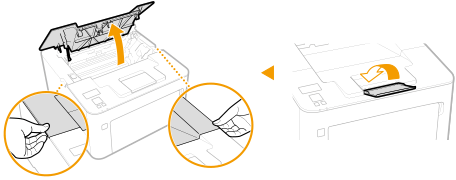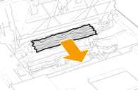 ![]() ![]() لا تقم بهزّ أو إمالة خرطوشة الأسطوانة. كذلك، تجنب تعريض خرطوشة الأسطوانة للصدمات كطرقها بشيء ما. القيام بذلك يمكنه أن يتسبب في تسرب الحبر المتبقي في خرطوشة الأسطوانة. انزع خرطوشة الأسطوانة برفق بنفس زاوية الفتحة.