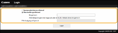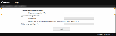 Indtast den korrekt pinkode i [Systemadministrator-PIN] for at logge på i systemadministratortilstand.