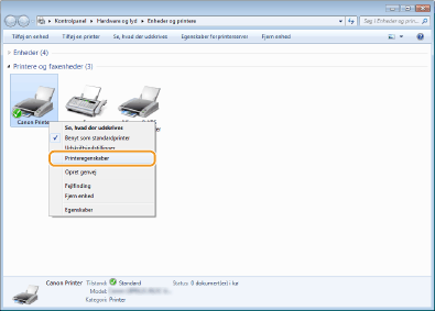 Højreklik på maskinens printerdriverikon, og klik på [Printeregenskaber] eller [Egenskaber].