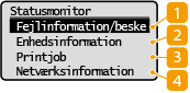 Viser maskinens status, f.eks. den resterende mængde toner i tonerpatronen osv.
