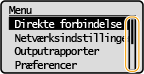 for at rulle op eller ned. Et punkts tekst og baggrundsfarve omvendes, når det markeres.