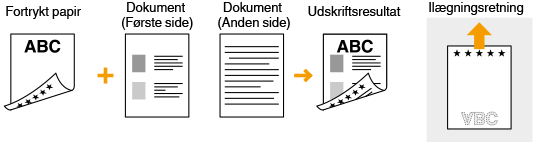 Indstillingen <Skift papirindføringsmetode>Når du udskriver på fortrykt papir, skal du ændre den måde, papiret vender på, når det lægges i, hver gang du udfører 1-sidet og 2-sidet udskrivning. Hvis <Skift papirindføringsmetode> imidlertid er indstillet til <Prioritering for printside>, kan den måde, papiret vender på, som du bruger til ilægning af fortrykt papir til 2-sidet udskrivning (logosiden nedad), også bruges til 1-sidet udskrivning. Denne indstilling er især praktisk, hvis du ofte udfører både 1-sidet og 2sidet udskrivning. <Skift papirindføringsmetode>