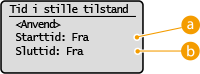 Angiv et tidspunkt for afslutning af støjsvag tilstand. Vælg <Til> for at foretage indstillingen, og angiv derefter tidspunktet.