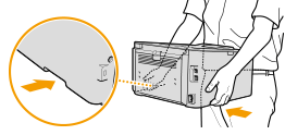 Luk frontdækslet, papirstopperen og alle lignende dele, og flyt derefter maskinen til en ny placering.