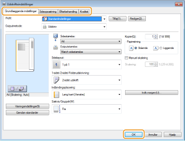 Angiv udskrivningsindstillingerne efter behov, og klik på [OK].