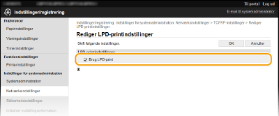 Markér afkrydsningsfeltet for at udskrive via LPD. Hvis du ikke bruger LPD-udskrivning, skal du fjerne markeringen i afkrydsningsfeltet. [Brug RAW-print]