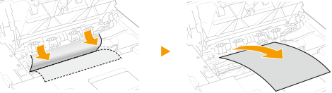 Tag fat i begge kanter af papiret, træk den forreste ende af papiret ned, og træk det derefter ud.