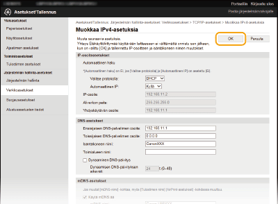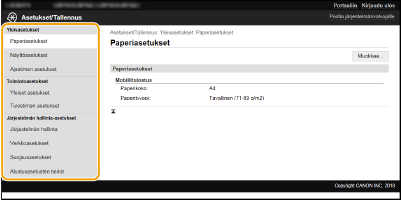 Voit muuttaa laitteen eri asetuksia Etäkäyttöliittymän avulla. Useimmat asetukset voidaan määrittää myös laitteessa, mutta jotkin asetukset voidaan määrittää vain Etäkäyttöliittymällä. Tässä osiossa kuvataan laitteiden asetusten muuttamisen peruskulku Etäkäyttöliittymää käytettäessä.