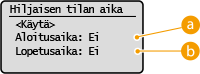 Määritä aika, jolloin siirrytään hiljaiseen tilaan. Aseta valitsemalla <Kyllä> ja määrittämällä sitten aika.