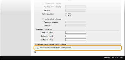 Ota käyttöön [Käyttäjän asetukset 1]/[Käyttäjän asetukset 2]/[Käyttäjän asetukset 3] valitsemalla tämä valintaruutu. Jos haluat poistaa käytöstä käyttäjän asetukset, poista vastaavan valintaruudun valinta.