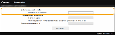 Selecteer [Systeembeheerder-modus] of [Algemene gebruikersmodus].