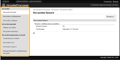 С помощью Удаленного ИП можно изменять различные настройки аппарата. Большинство параметров можно также и на самом аппарате, однако существует ряд параметров, которые можно настроить только с помощью Удаленного ИП. В этом разделе описывается базовая процедура изменения параметров аппарата с помощью Удаленного ИП.