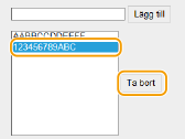 Ange MAC-adressen i textrutan [Adress att registrera] och klicka sedan på [Lägg till].