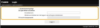 Ange rätt PIN-kod i [Systemansvarig-PIN-kod] för att logga in i systemhanteringsläge.