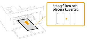 Fyll på kuverten så att sidan med fliken vänds mot vänster sida enligt bilden.