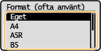 När du fyller på papper med eget format