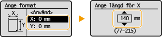 ange längden för <X>-sidan med / <Y> ange längden för <Y>-sidan ![]() ![]() |