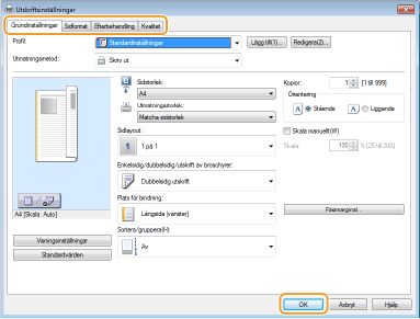 Ange de utskriftsinställningar som behövs och klicka på [OK].