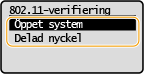 Om du ansluter till ett trådlöst nätverk, upplever enheten ett autentiseringsfel om autentisering av delad nyckel är inställt på den trådlösa routern. Om detta händer ändrar enheten automatiskt inställning till <Delad nyckel> och försöker ansluta på nytt.