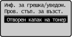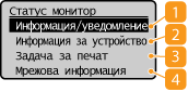 Показва състоянието на устройството, като например количеството, оставащо в тонер касетата, и др.
