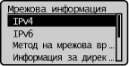 Показва мрежовите настройки, като напр. IP адреса на устройството, и състоянието, като напр. условията за безжична LAN комуникация.