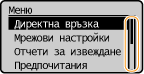 Можете да променяте различни настройки на дисплея, като например скорост на превъртане или език на дисплея: <Настройки за извеждане>