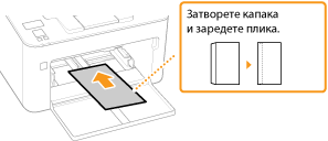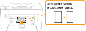 Зареждайте пликовете така, че краят с капака да е насочен към лявата страна, както е показано на илюстрацията.