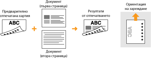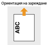 Този раздел описва главно как да зареждате предварително отпечатана хартия с правилна ориентация. За описание на общата процедура за зареждане на хартия в касетата вж. Зареждане на хартия в касетата или Зареждане на хартия в многофункционалната тава.