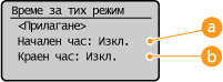 Задайте време за излизане от тих режим. За настройка изберете <Вкл.> и след това посочете времето.