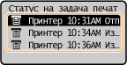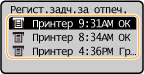 Когато за <Извеждане на регистър на задачи> е зададена настройка <Изкл.>, не можете да проверявате регистрите за печат. <Извеждане на регистър на задачи>