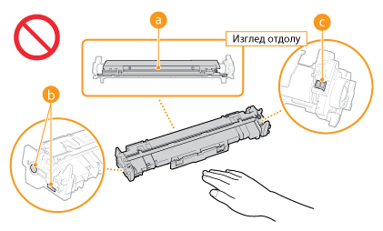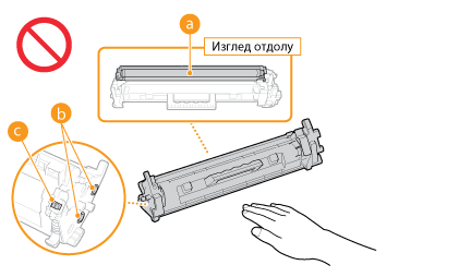 ). Не докосвайте електрическите контакти ( ) или паметта на касетата на барабана ( ).![]() Не изваждайте касетата на барабана от опаковката или устройството, освен когато е необходимо.
