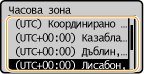 Задайте <Часова зона>, преди да настроите текущите дата и час. Ако промените настройката за <Часова зона> по-късно, текущите дата и час също ще се променят по съответния начин.