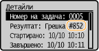 Ако възникне грешка, например при неуспешно отпечатване, съответният код за грешка се показва като трицифрено число в екрана с регистър на задачите. Проверете информацията по-долу, за да разберете причините и решения за всеки код за грешка. За подробна информация за екрана на регистъра на задачите вижте