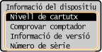 Mostra la quantitat restant als cartutxos de tòner i de tambor. Pot ser que altres parts internes de l'equip arribin al final de la seva vida útil abans que s'acabin les quantitats restants als cartutxos de tòner o de tambor.