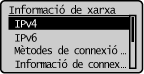 Mostra la configuració de xarxa, com ara l'adreça IP de l'equip, i l'estat, com ara l'estat de la comunicació LAN sense fil.