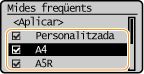 Assegureu-vos que només se seleccionin les caselles de les mides de paper que es facin servir amb freqüència.