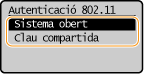 Quan es connecta a una xarxa LAN sense fil, l'equip produeix un error d'autenticació si l'autenticació de clau compartida s'estableix a l'encaminador sense fil. Si això passa, l'equip canvia automàticament l'opció a <Clau compartida> i recupera la connexió.