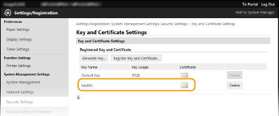 [Key and Certificate Settings].