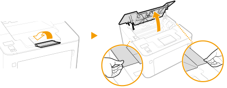 Κλείστε το στήριγμα χαρτιού και, στη συνέχεια, ανοίξτε το κάλυμμα γραφίτη.