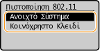 Όταν συνδέεστε σε ασύρματο δίκτυο LAN, η συσκευή παρουσιάζει σφάλμα πιστοποίησης εάν έχετε επιλέξει την πιστοποίηση κοινόχρηστου κλειδιού στον ασύρματο δρομολογητή. Εάν συμβεί αυτό, η συσκευή αλλάζει αυτόματα τη ρύθμιση σε <Κοινόχρηστο Κλειδί> και επαναλαμβάνει την προσπάθεια σύνδεσης.