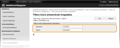 [Jelszó] Adjon meg egy alfanumerikus karakterekből álló jelszót a bejegyzendő fájlhoz tartozó privát kulcskészlet számára.