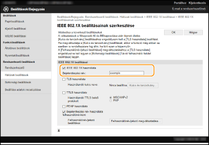 Jelölje be az [IEEE 802.1X használata] jelölőnégyzetet, majd adja meg a bejelentkezési nevet a [Bejelentkezési név] szövegmezőben.